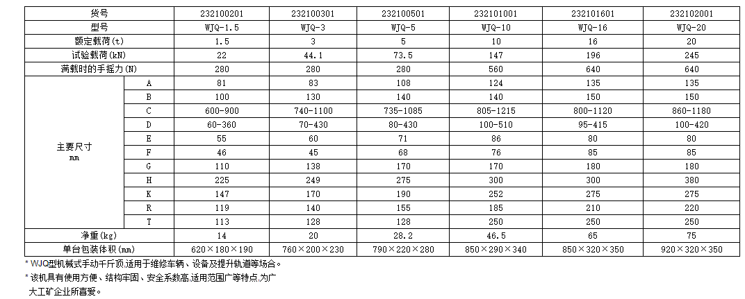 機械式千斤頂WJQ系列