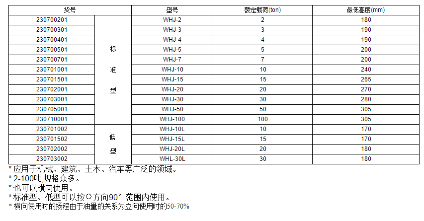 標準型﹠底型油壓千斤頂WHJ系