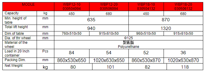 WBP Electrical Hydraulic Lift Table